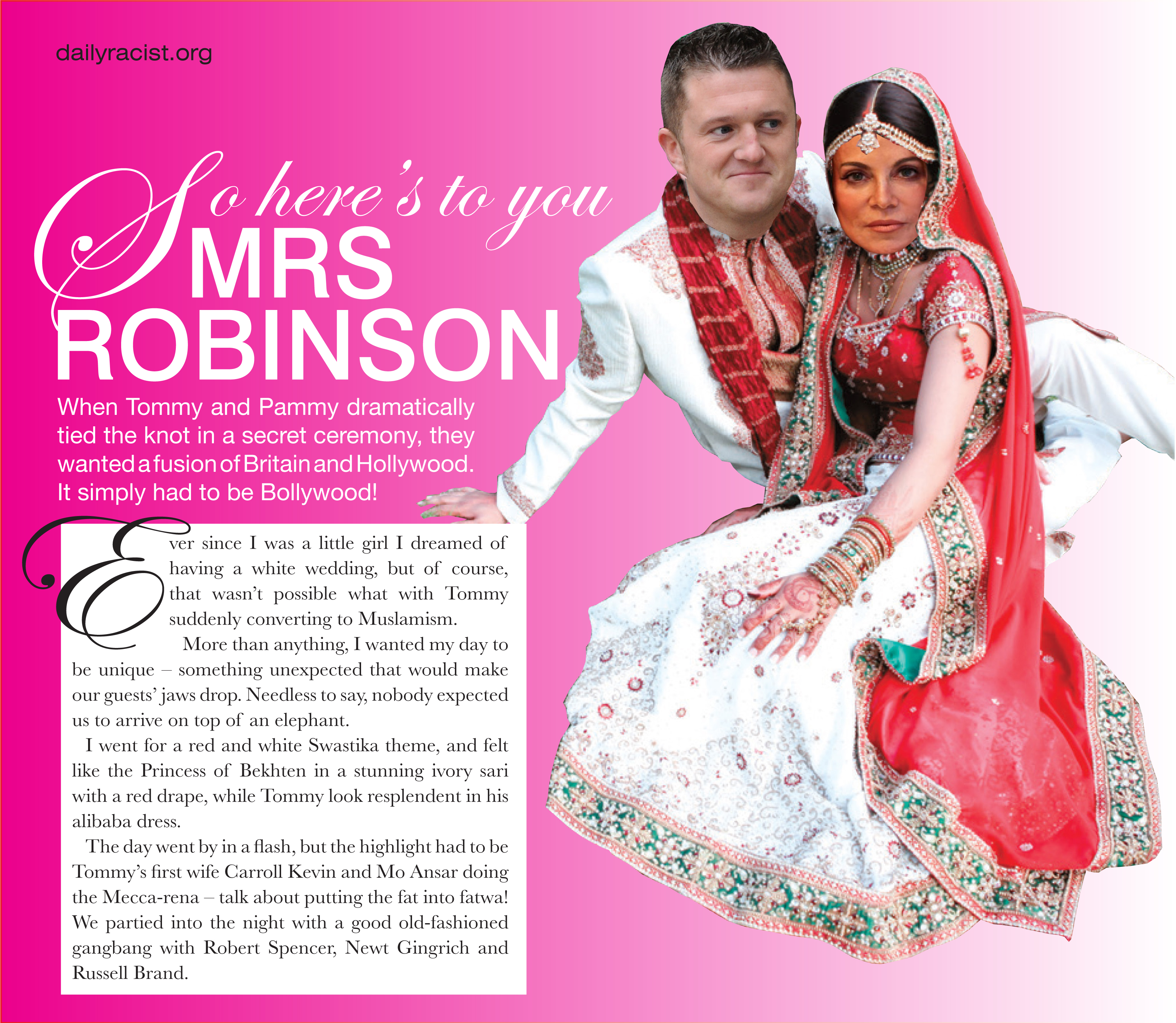 EXCLUSIVE! Pamela Geller and Tommy Robinson’s secret wedding Posted by Shihab S Joi 0 Share this: Click to share on X (Opens in new window) X Click to share on Facebook (Opens in new window) Facebook Like Loading... Related
