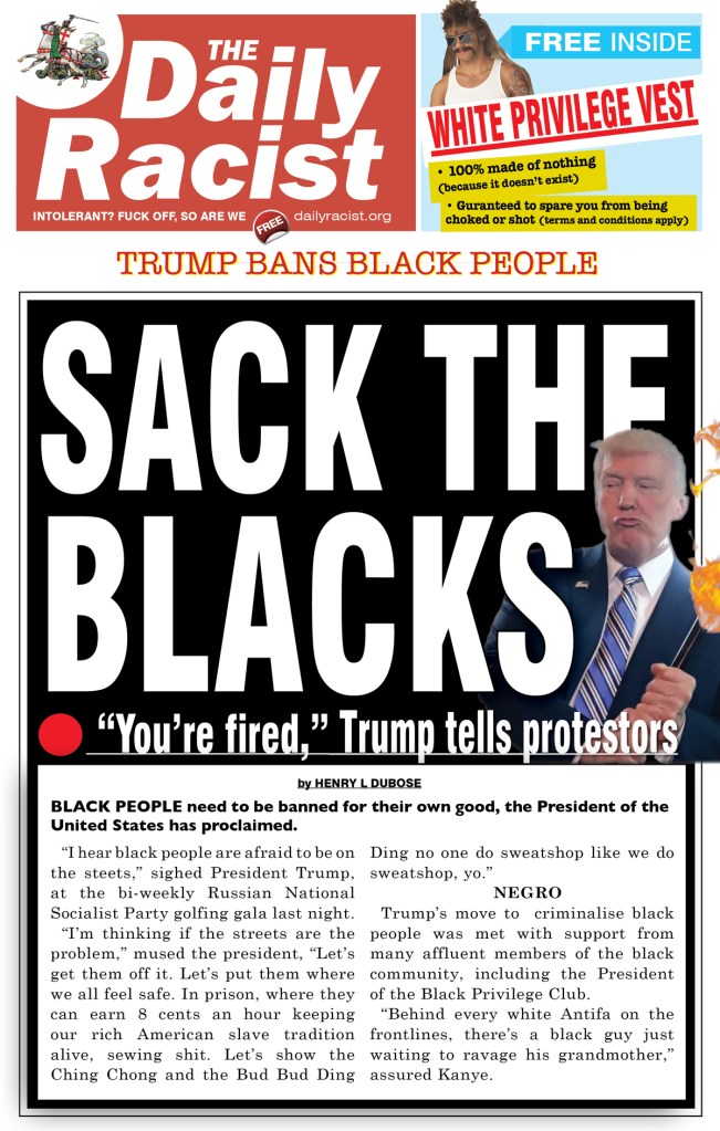 TRUMP MAKES BLACK PEOPLE ILLEGAL Posted by Shihab S Joi 0 Share this: Click to share on X (Opens in new window) X Click to share on Facebook (Opens in new window) Facebook Like Loading... Related